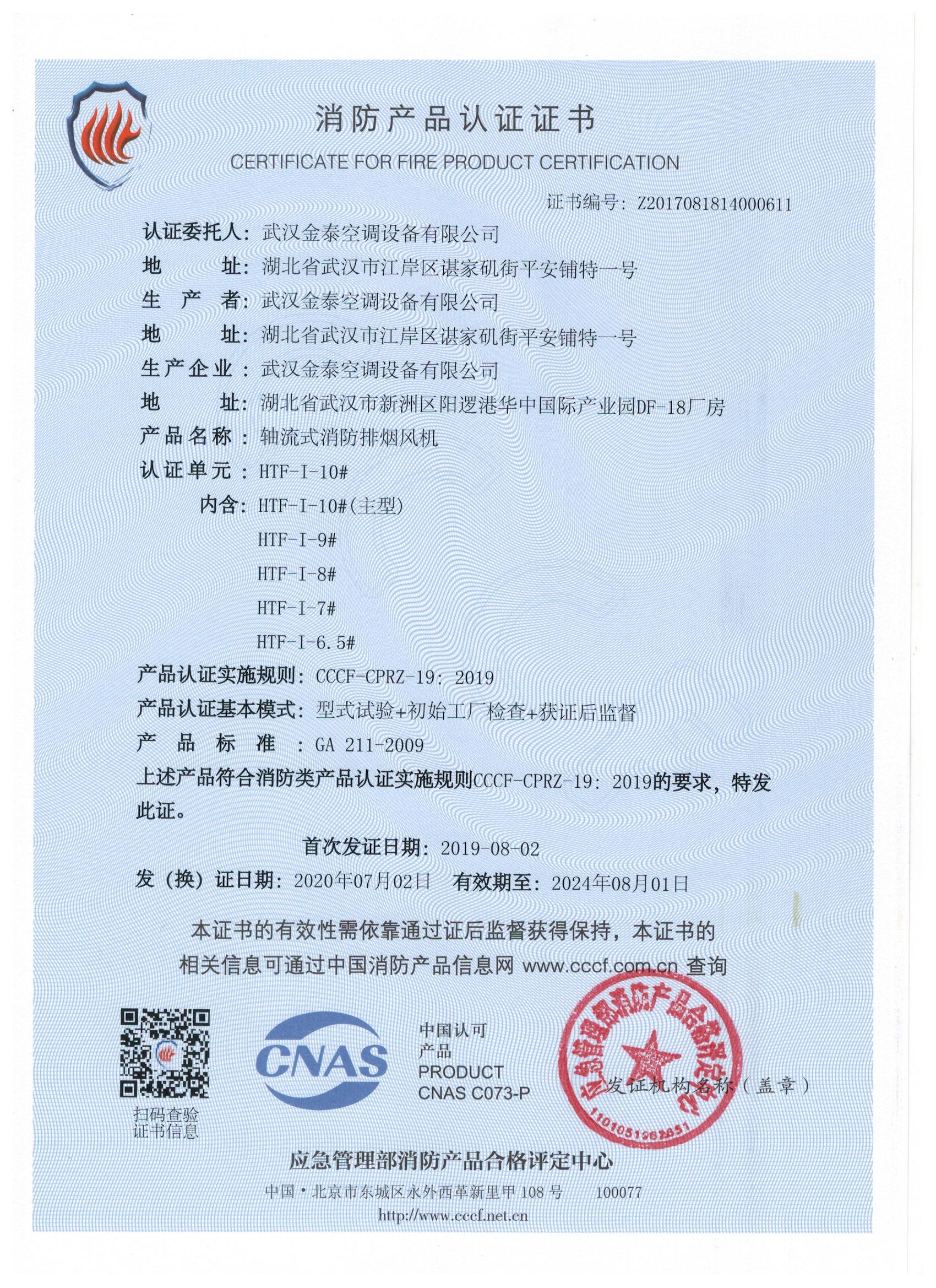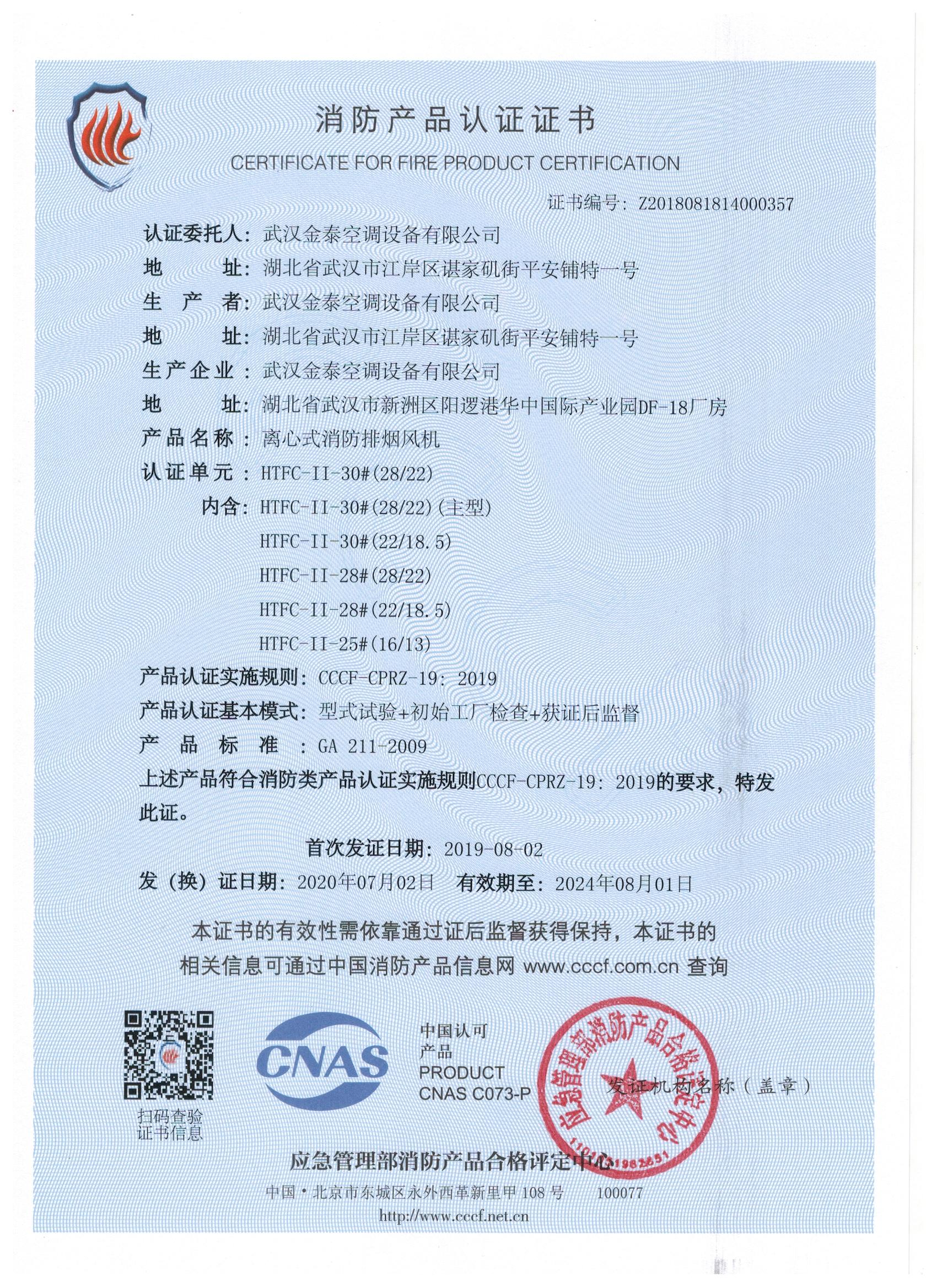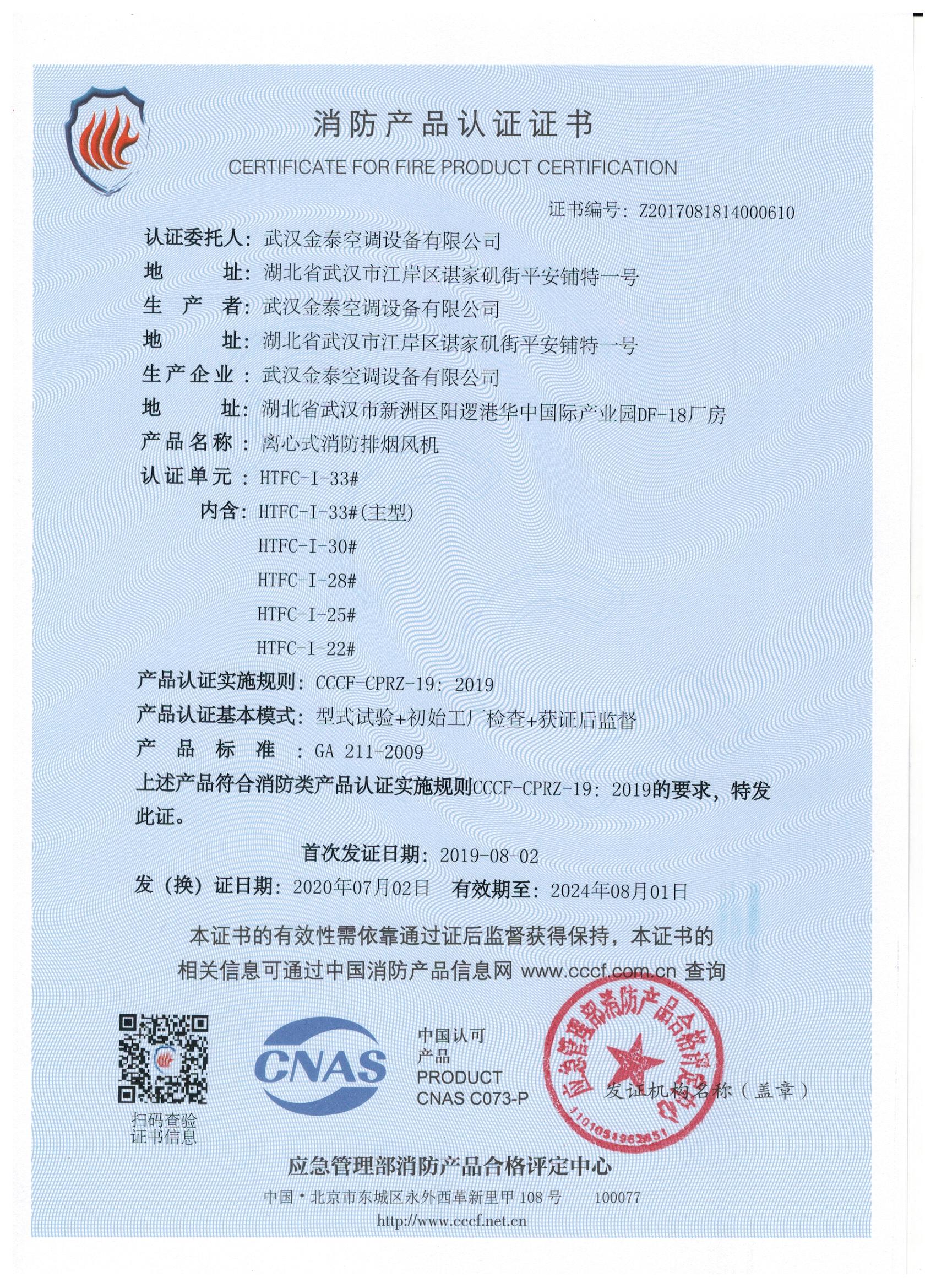 武漢金泰空調(diào)設(shè)備有限公司 是國內(nèi)長期專注于民用風(fēng)機(jī)、工業(yè)風(fēng)機(jī)領(lǐng)域的標(biāo)桿企業(yè):專業(yè)生產(chǎn)消防排煙風(fēng)機(jī)系列、排煙防火閥系列、一般通風(fēng)機(jī)系列(軸流式、離心式、屋頂式、壁式、隧道式、射流式)、風(fēng)口、風(fēng)管等消防及通風(fēng)設(shè)備。產(chǎn)品經(jīng)公安部消防產(chǎn)品合格評(píng)定中心評(píng)定符合消防產(chǎn)品CCC標(biāo)準(zhǔn);經(jīng)中國合格評(píng)定國家認(rèn)可委員會(huì)認(rèn)證的檢驗(yàn)所檢驗(yàn)合格;經(jīng)國家防火建材質(zhì)量監(jiān)督檢驗(yàn)中心(四川中心)火燒實(shí)驗(yàn),耐火性能達(dá)標(biāo)。